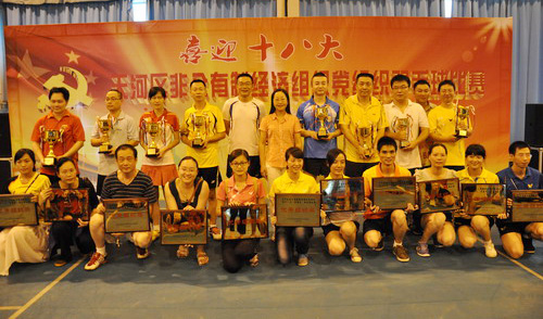 10月28日,由天河區非公有制經濟組織黨工委舉辦的“喜迎十八大”羽毛球比賽在賽馬場偉盛羽毛球館舉行。我司由王永強、李運喜、謝蕓宇、曹乙香、劉鵬、鄒信祥組成的羽毛球代表隊獲得優秀組織獎。
