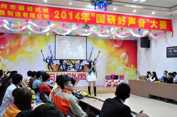 11月17日晚,在廣州市國研機械設(shè)備制造有限公司的多功能會議廳洋溢著一派節(jié)日的氣氛,員工們個個興高采烈一掃往日的疲憊,大家期待已久的“國研好聲音”決賽正在如火如荼地緊張進行著。選手們的精彩演唱高潮迭起,讓賽場上的掌聲雷動。那些平時默默無語工作在生產(chǎn)一線的員工在比賽中都展示了他們積極向上樂觀進取的生活態(tài)度,迸發(fā)出了精彩的演出。選手們經(jīng)過2個多小時的激烈角逐,評委根據(jù)各個選手的音準、音色、音調(diào)等多項的綜合因素公平打分,評選出大賽的各個獎項。