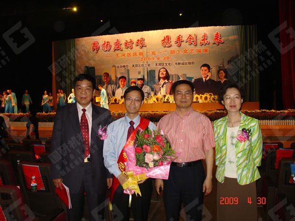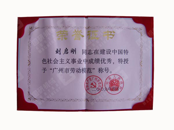 4月28日上午,廣州市委大禮堂張燈結(jié)彩、鑼鼓喧天,一派喜氣洋洋。廣州市委、市政府慶祝“五一”國際勞動節(jié)暨勞動模范和先進(jìn)集體表彰大會在這里舉行。廣州市國研機(jī)械設(shè)備制造有限公司市場部經(jīng)理劉啟剛同志作為天河區(qū)6萬多家民營企業(yè)唯一當(dāng)選的廣州市勞動模范出席了表彰大會。廣東省委常委廣州市委書記朱小丹、市長張廣寧等省市領(lǐng)導(dǎo)親自為劉啟剛等勞動模范頒發(fā)廣州市勞動模范獎狀和榮譽(yù)證書并合影留念。